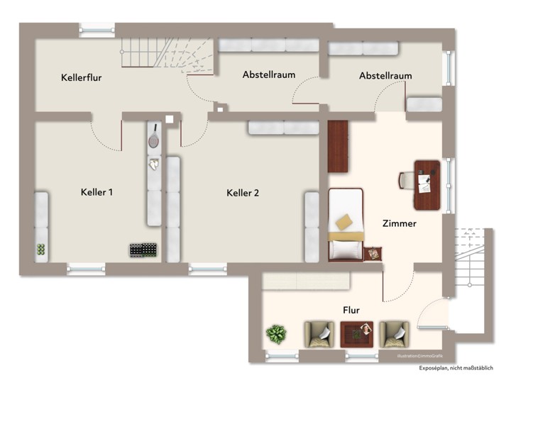 Der Keller ist ein Untergeschoss mit Wohnraumqualität, leicht über der umgebenden Geländeebene. Zugang haben Sie sowohl von innen als auch über eine Außentreppe. Er bietet zwei Kellerräume, ein beheizbares Tageslichtzimmer, sowie zusätzliche Lagermöglichkeiten (Abstellräume). Viel Platz für Hobby, Werkstatt oder zusätzliche Nutzflächen.